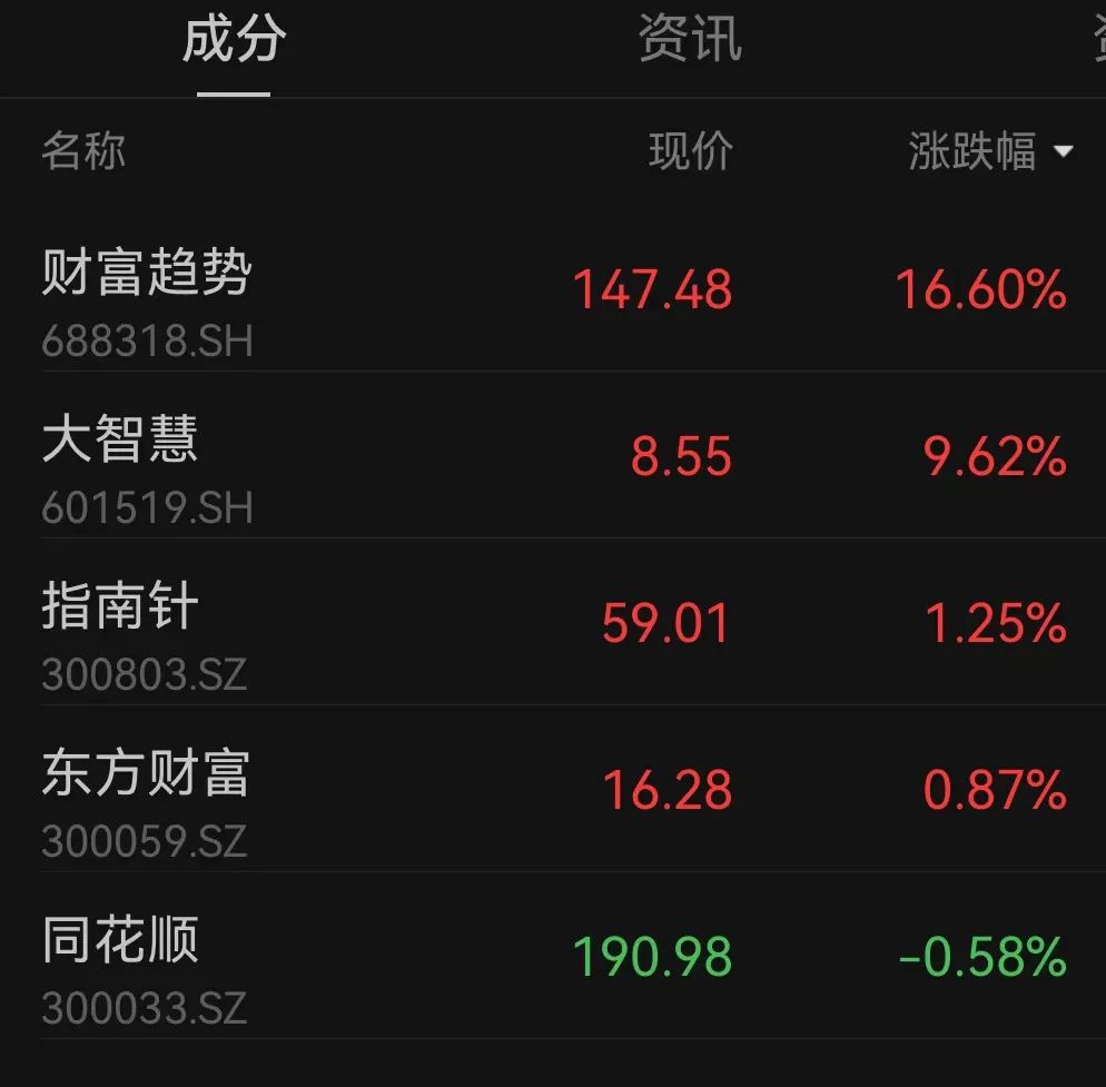 除券商板块外,与往还臆想的炒股软件板块不绝高潮,盘初财富趋势一度“20cm”涨停,步调午间收盘仍涨超16%。
