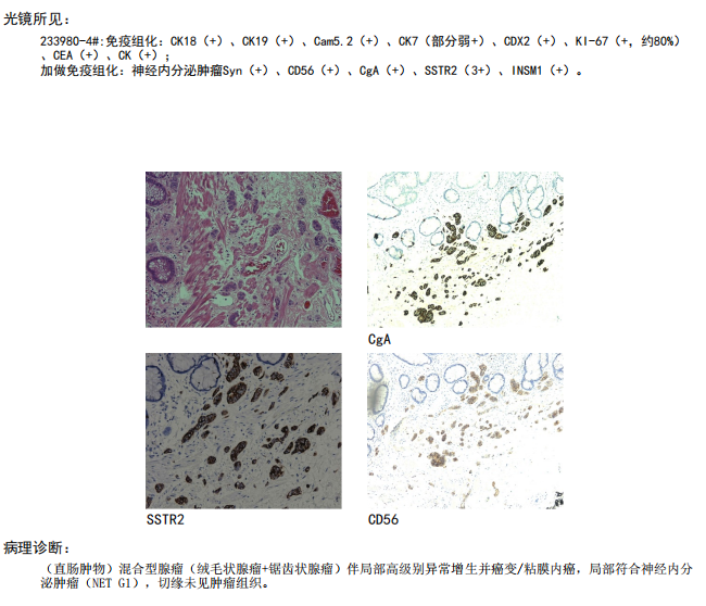 但是几天后,陈叔的病理报告却令东谈主大吃一惊!扫尾表露,陈叔的病灶切缘是未见肿瘤组织的,代表依然是调节性切除,成果相称理念念,随访即可。但是,从组织因素来看,这个直肠病灶归拢三种肿瘤因素,包括绒毛状腺瘤+锯齿状腺瘤(伴局部高等别很是增生并癌变/黏膜内癌)+神经内分泌瘤(NET G1),查阅泰斗文件可知,这是一种相称零碎的病例!如若此次莫得实时内镜休养,后果真实不胜设念念!
